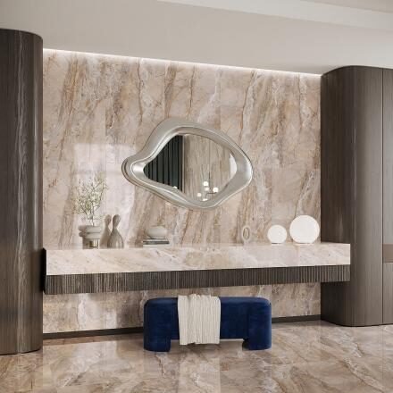 “Allure Beige” is ideal for wall designs in both private and public areas – whether in bathrooms, kitchens, entrance areas, or commercial spaces.