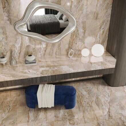 The wall and floor tile, decorative tile “Allure Beige”, is a high-quality porcelain stoneware tile in the 120×60 cm format with a thickness of 8 mm and an elegantly polished surface.