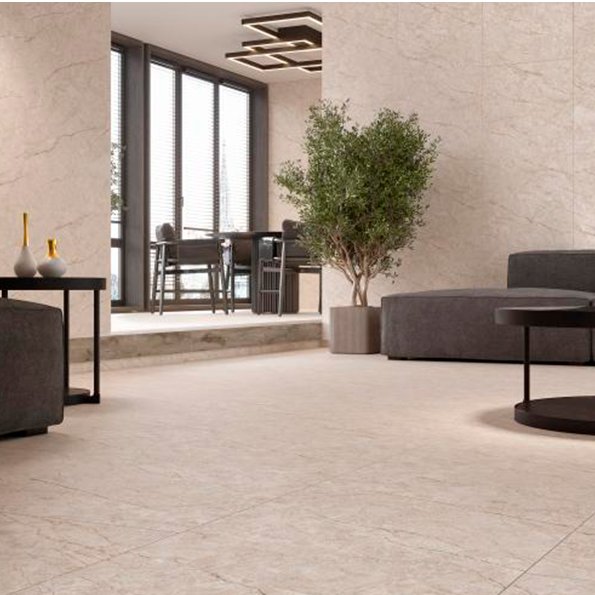 “Memoria Beige” is ideal for indoor use in spaces such as living rooms, kitchens, and bathrooms. Thanks to its high abrasion resistance (PEI 4) and R10 slip resistance, it is also perfectly suited for public areas.